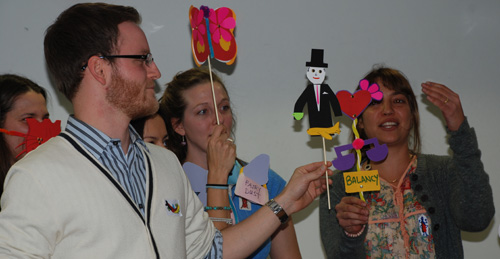 Spritivity, as a communication medium, relies on developing a picture language for making and exchanging stories. It is particularly significant in situations where the various groups of participants do not share a common written and spoken language. The key characters, or elements in the stories are sprites, which participants may construct for themselves as puppets they can animate, or masks they can wear.